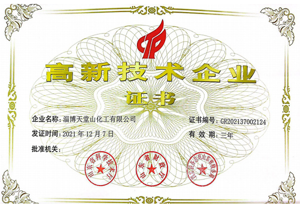 公司產(chǎn)品符合國家的產(chǎn)業(yè)政策,各種手續(xù)齊全,通過了環(huán)保、衛(wèi)生、消防、安全生產(chǎn)許可等各項(xiàng)驗(yàn)收,企業(yè)化學(xué)品安全標(biāo)準(zhǔn)化三級達(dá)標(biāo)驗(yàn)收,并且通過了ISO9001質(zhì)量管理體系認(rèn)證、ISO14001環(huán)境管理體系、ISO45001職業(yè)健康管理體系,先后被有關(guān)部門授予“市級重合同守信用企業(yè)”“消費(fèi)者滿意單位”“質(zhì)量、計量管理先進(jìn)單位”“勞動關(guān)系和諧企業(yè)”“企業(yè)免檢單位”“淄博市專精特新中小企業(yè)”“山東省化工明星單位”“山東化工發(fā)展?jié)摿?0強(qiáng)”“淄博市智能車間”“山東省創(chuàng)新型中小企業(yè)”“科技型中小企業(yè)”“高新技術(shù)企業(yè)”“山東省專精特新”等稱號。